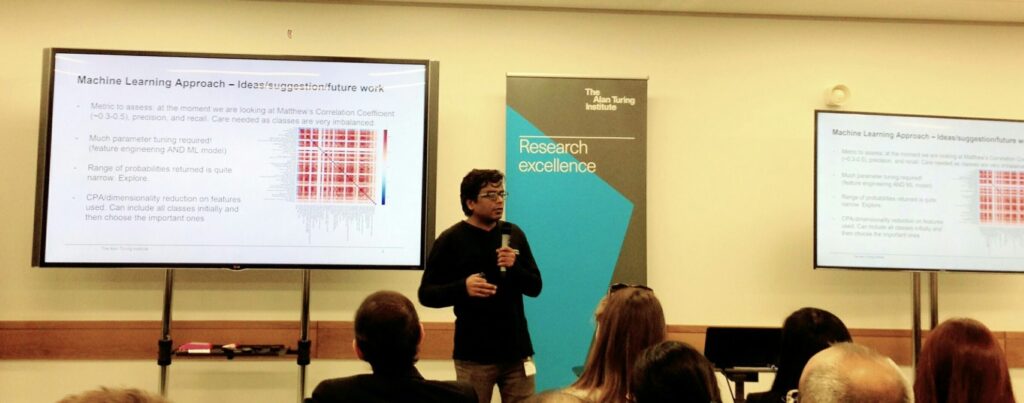 Defense Science and Technology Laboratory (DSTL) at The Alan Turing Institute, London. 22-26 May 2017. Blog about it can be seen here. - An extensive week-long work on health care project – Predicting Language Outcome and Recovery After Stroke (PLORAS), a problem was posed by University College London at The Alan Turing Institute, London. See a short summery report here. 16-20 April 2018.